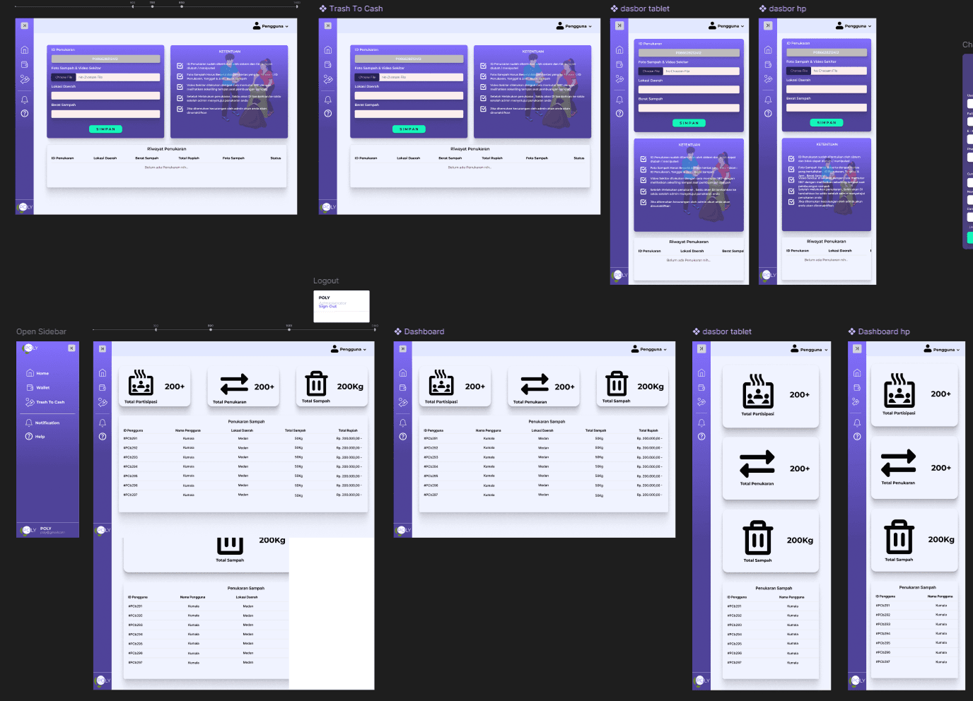 The Dashboard page allows users to withdraw their bonus balance through the wallet feature as well as earn bonuses from the trade feature by exchanging waste using proof of disposal.